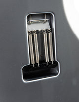 Some of the more distinctive specifications include, the headstock shape, tuners, neck and fretboard, bridge, and pickups and electron- ics. The headstock shape is based on PRS’s trademark design, but in- verted to both accommodate Mayer’s playing style and also to keep a consistent length of string behind the nut, which makes staying in tune easier. The tuners are a traditional vintage-style, closed-back tuner, but with PRS’s locking design. The neck shape was modeled a er 1963/1964 vintage instruments, and the fretboard has a 7.25” radius. The moment your hand grabs this neck, it just feels right. Like the tuners, the steel tremolo takes a classic design and incorporates PRS’s trem arm and Gen III knife-edge screws. The bridge on the Silver Sky is setup flush to the body in the neutral position so that the tremolo bridge only goes down in pitch. By keeping the bridge in contact with the body, the guitar itself is acoustically louder, which improves the signal to noise ratio of the single-coil pickups. The 635JM single-coil pickups are very round and full, with a musical high end that is never “ice-picky” or brash.